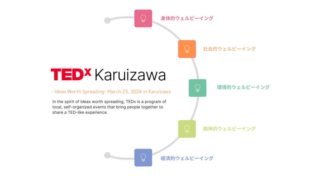 おかげさまをもちまして、2024年3月23日、初回となる TEDxKaruizawa を大盛況で終えることができました。お力添えをいただきまして、誠に誠にありがとうございました。次回開催につきましては、2026年4月時点で未定となっております。開催することとなりましたら、本サイトにて告知いたします。どうぞおねがい申し上げます。